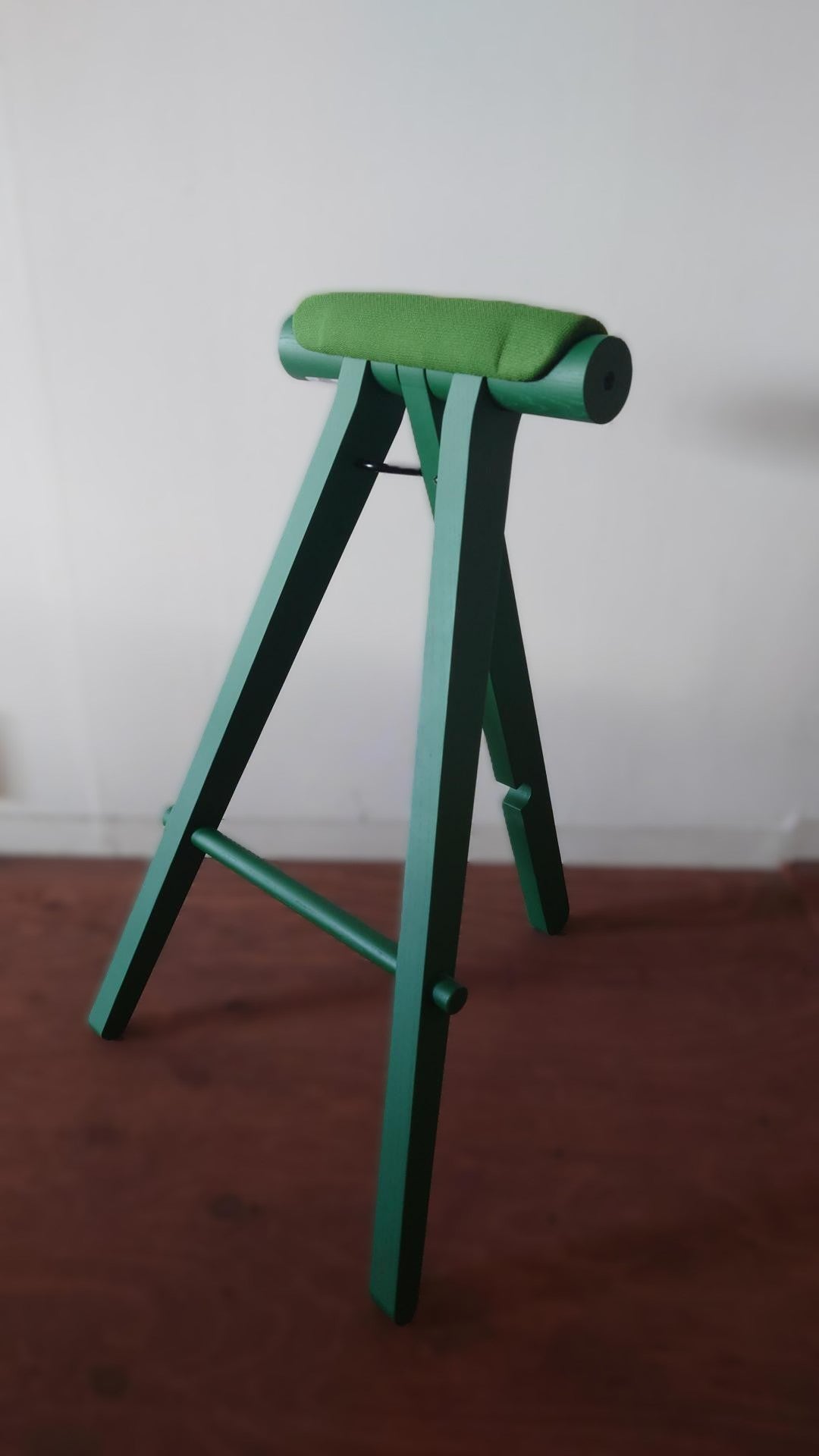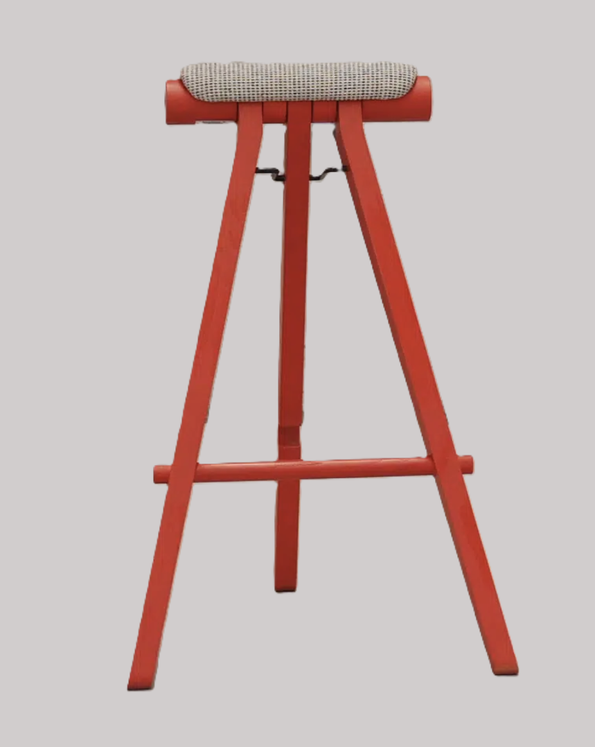 「Perigallo(ペリガッロ)」という名称は、スペインの方言で“果実を収穫するための三脚のはしご”を指します。デザインはその伝統的な三脚構造から発想を得ており、脚部が折りたたみ可能なスツールです。急に席が必要になった時にもサッと出して使える、ホストやゲスト対応に優れた実用的な一脚です。